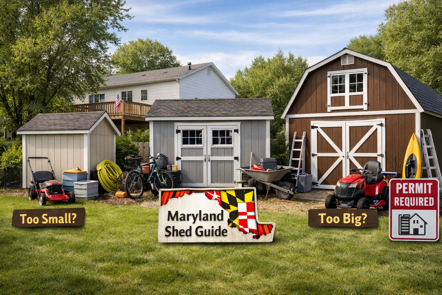 The skeleton of your shed determines how well it handles everything Maryland throws at it: humid summers, ice storms, nor’easters, and the occasional 60 mph wind gust.